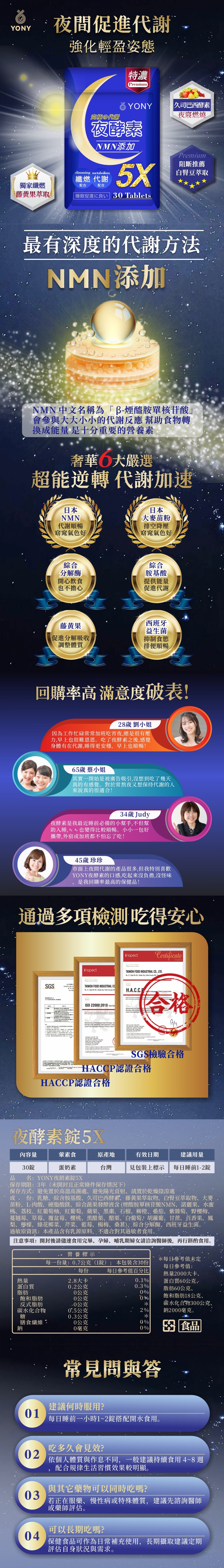 YONY NMN夜酵素錠 (30錠/袋)【輕盈代謝】