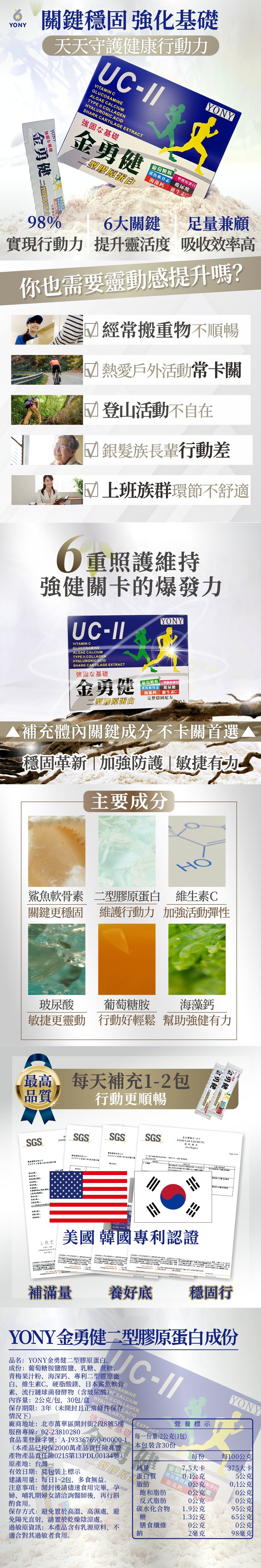 YONY UC-II金勇健二型膠原(30包/盒) 【靈活行動】